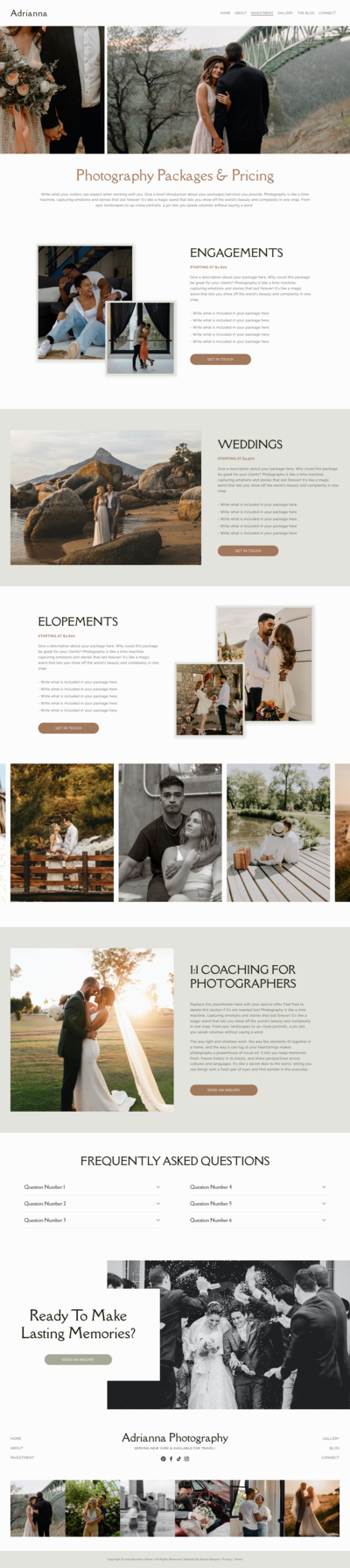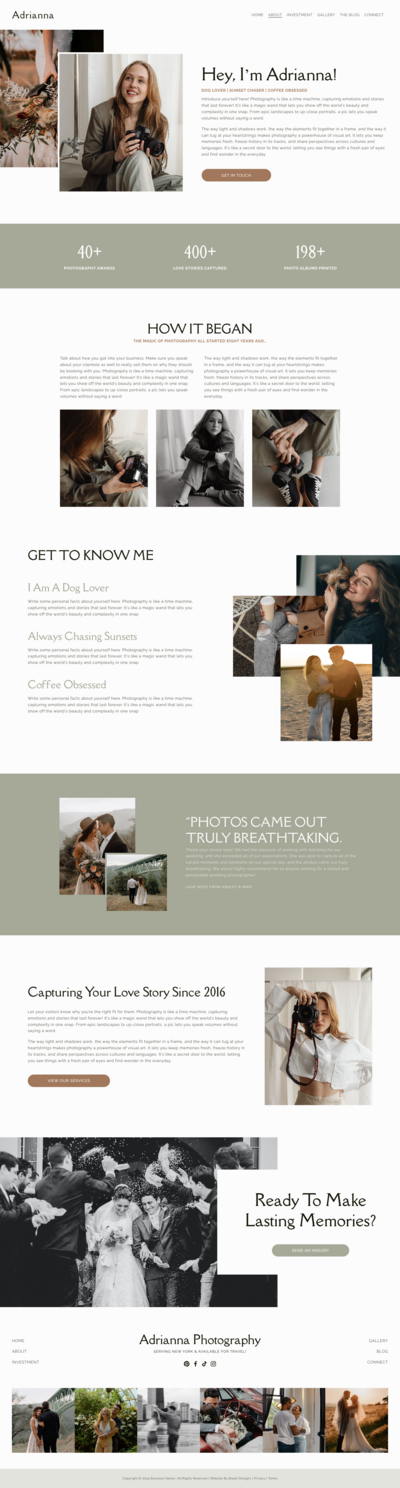 Crafted for photographers, artists, and creative professionals, this modern Squarespace template is perfect for showcasing breathtaking visual portfolios. Its clean, contemporary design offers an immersive user experience, intuitive navigation, and a layout that ensures your work makes a lasting professional impression.