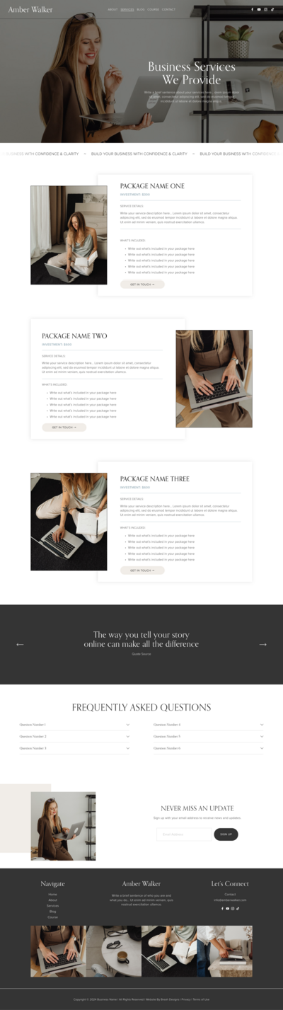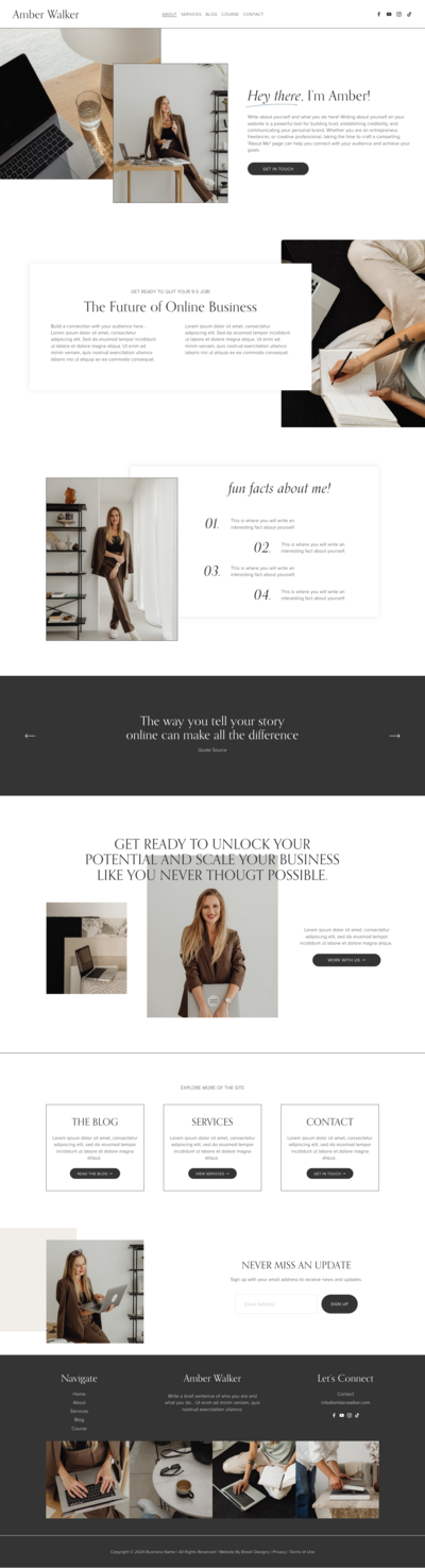 I was so overwhelmed trying to DIY my site, but this template made everything feel effortless. The design is stunning, the instructions were super clear, and I had my entire site done in a weekend. It looks like I paid thousands for a custom designer!