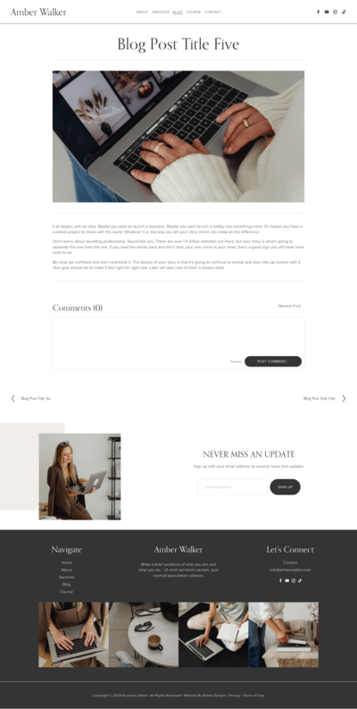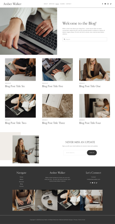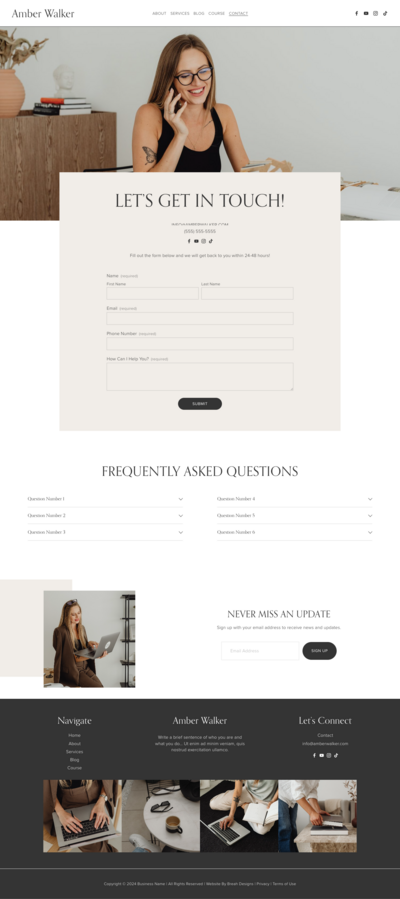 Beautiful template! Discovering this template has been a game changer for me and was exactly what I needed to get started! I haven't had time to design a site from scratch, so this was perfect! Breah was very helpful and quick to respond when I had a question. She made the process simple and effortless! Thank you!