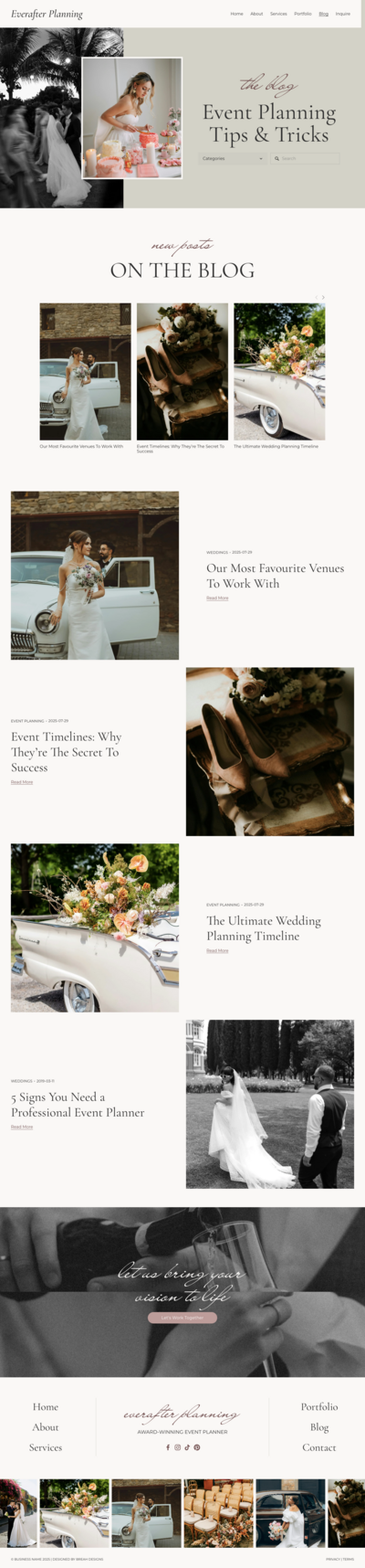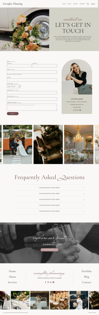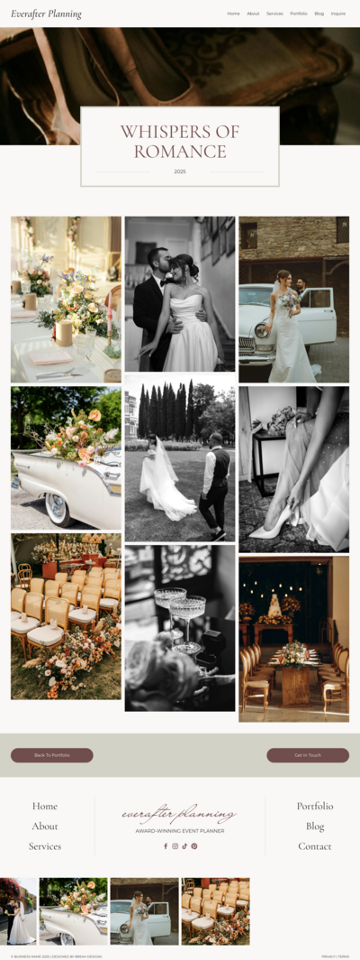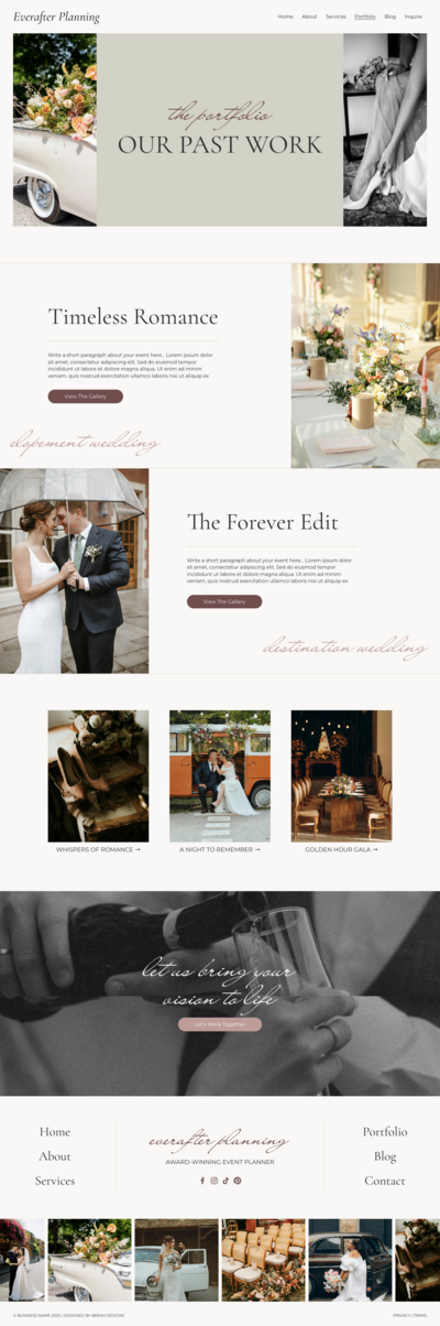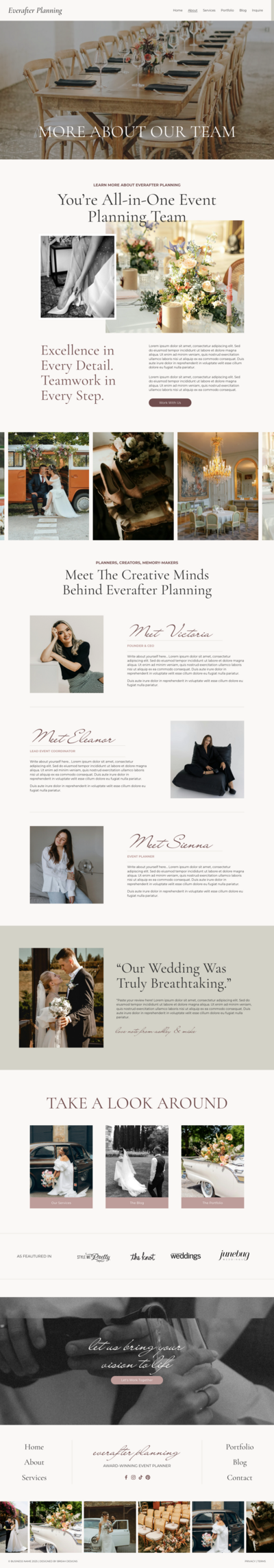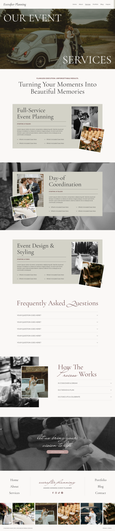 Elevate your event planning brand with this sophisticated Squarespace website template. Designed for wedding planners and luxury event designers, it blends stunning visuals with strategic layouts. Helping you showcase your services beautifully, attract premium clients, and book your dream events.