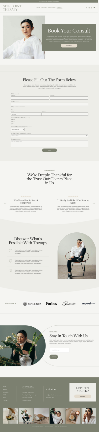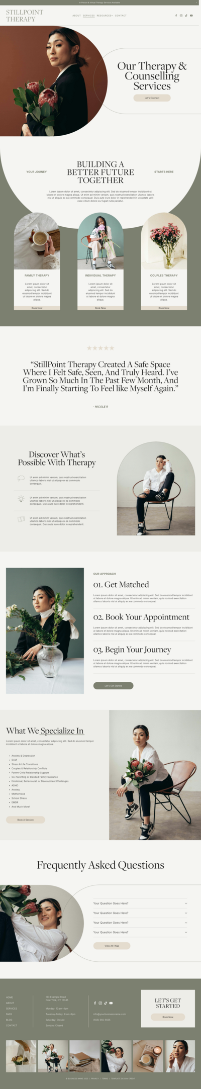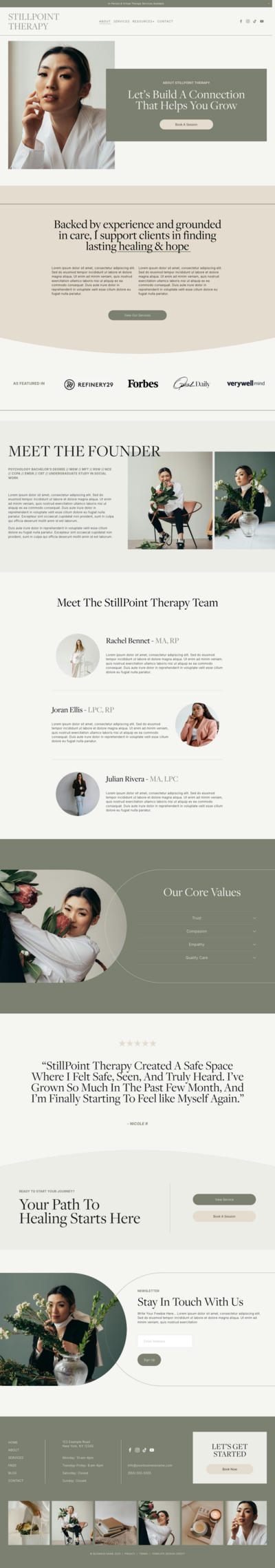 Modern and calming Squarespace website template for therapists, counsellors, and wellness professionals. Fully customizable and mobile-friendly, this template helps you showcase your services, build trust with clients, and make online booking simple. Perfect for mental health practitioners, life coaches, and holistic healers.