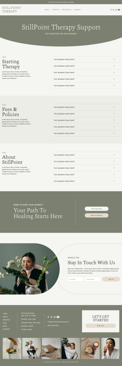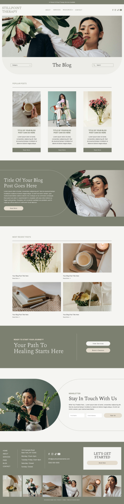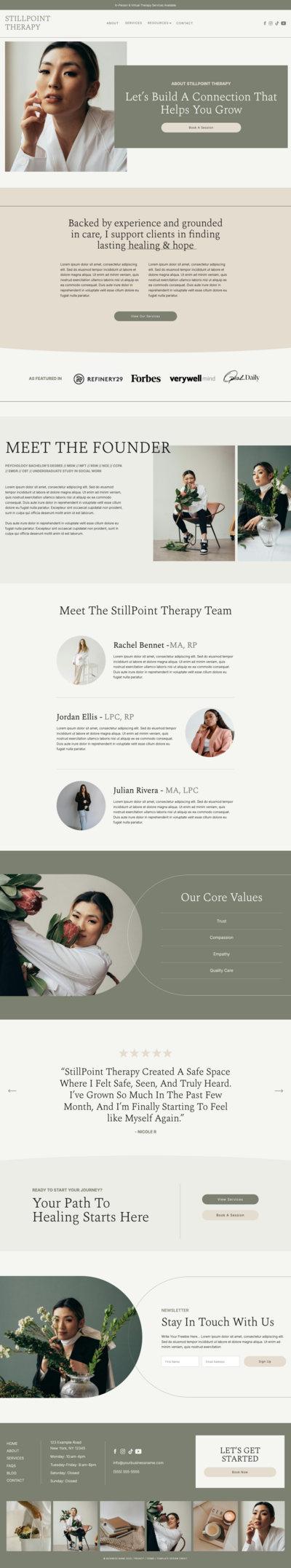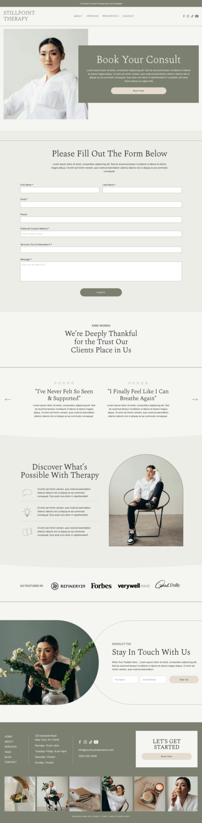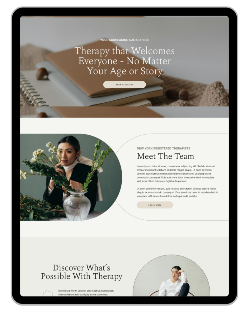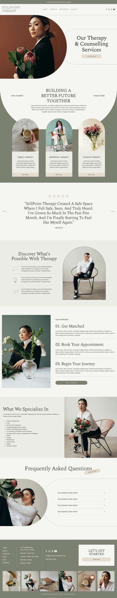 This modern and calming Showit template is perfect for therapists, life coaches, counsellors, and holistic wellness professionals. Easily customize your website to showcase your services, build client trust, and streamline online booking. Launch a professional, client-attracting website in minutes—no coding required.