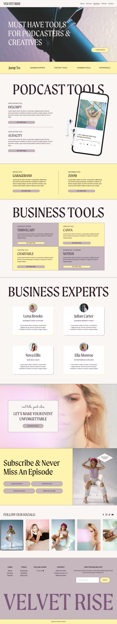 Packed with 9 powerful, high-converting pages, each template is designed to help you launch like a pro — FAST. Every layout is built to attract, engage, and convert. No tech headaches. No design overwhelm. Just drop in your content, tweak the look, and hit publish. You’ll have a scroll-stopping site in hours — not weeks. (Click the links to view the live pages).